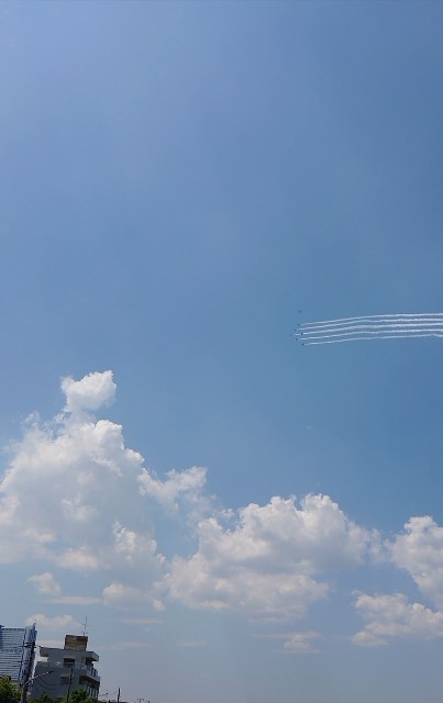 昨日、多摩川まで自転車をこいで、ブルーインパルスを見に行きました。